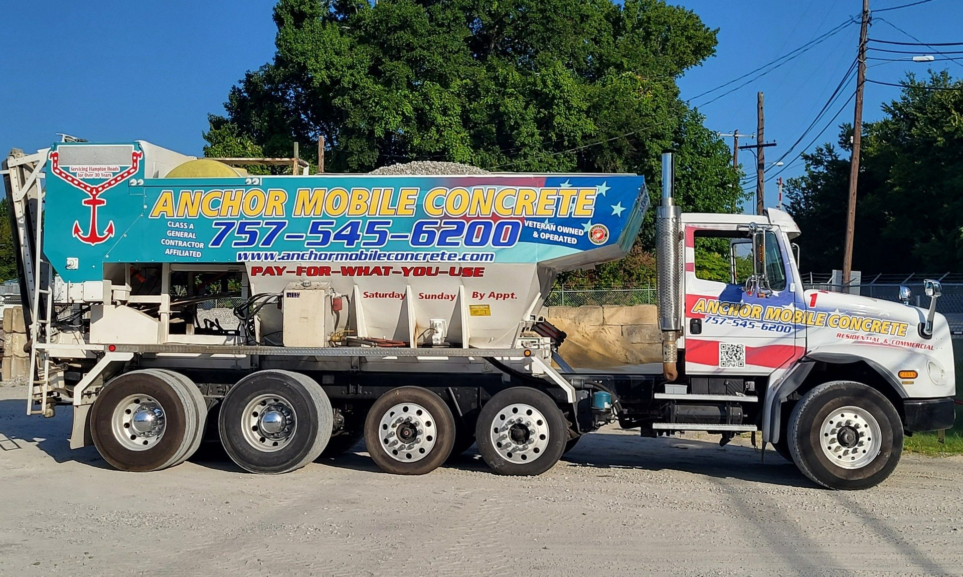 Volumetric mobile mixer trucks batch, measure, mix and dispense all from one unit. Volumetric mobile trucks can produce exactly the amount of concrete needed when it is needed at any time. This means no WASTE as you pay only for the amount you pour. NO HOT LOADS. There is no risk of premature stiffening of concrete if delays are encountered. Our trucks are able to provide smaller quantities of concrete from one yard to eight yards in one trip. Volumetric has the ability to do continuance concrete pours. Volumetric is different than the standard barrel concrete truck. A Volumetric concrete truck doesn't begin to mix until on site. The concrete you receive from Anchor, "The Concrete Maker" is FRESH, QUALITY CONCRETE. Once Anchor, "The Concrete Maker" arrives to the job site, the machine mixes the materials to produce the exact amount of concrete needed.